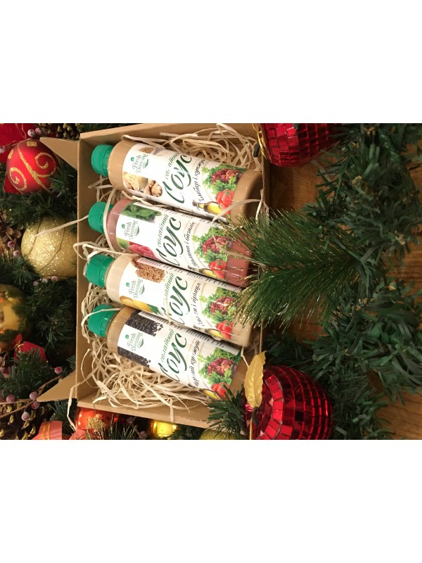 Усі 4 соуси в одному подарунковому наборі від Fresh Dressing до Нового року! Соуси Лимон та гірчиця, Імбир та кунжут, Чорний кунжут, Малина та базилік