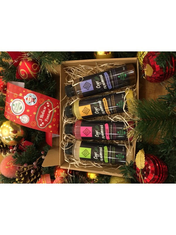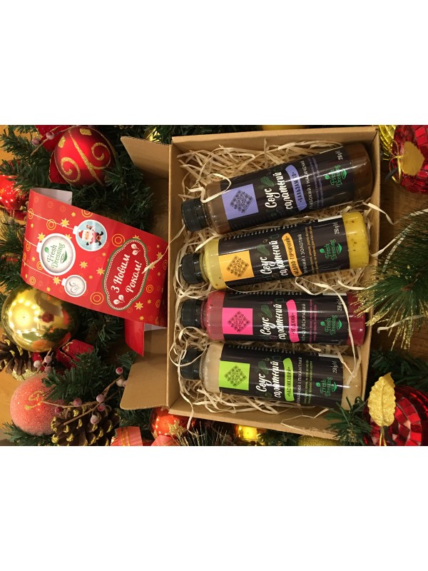 Усі 4 соуси в одному подарунковому наборі від Fresh Dressing та Лавка Традицій до Нового року! Соуси Бальзаміко, Часниковий, Медово-гірчичний та Ягідний